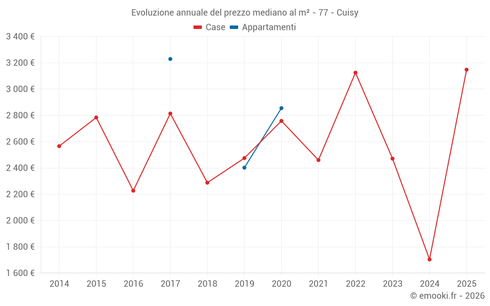 Evoluzione del prezzo mediano al m² degli appartamenti