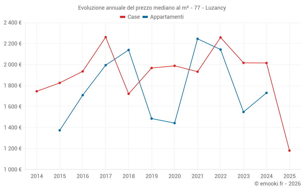 Il prezzo mediano sulle 21 transazioni di case degli ultimi 24 mesi nel comune di Luzancy era di 1 959 € al metro quadrato per un valore patrimoniale mediano di 190 500 €. In questo periodo il 60% delle transazioni era tra 1 465 e 2 694 € al metro quadrato (dal 2° all'8° decile).
