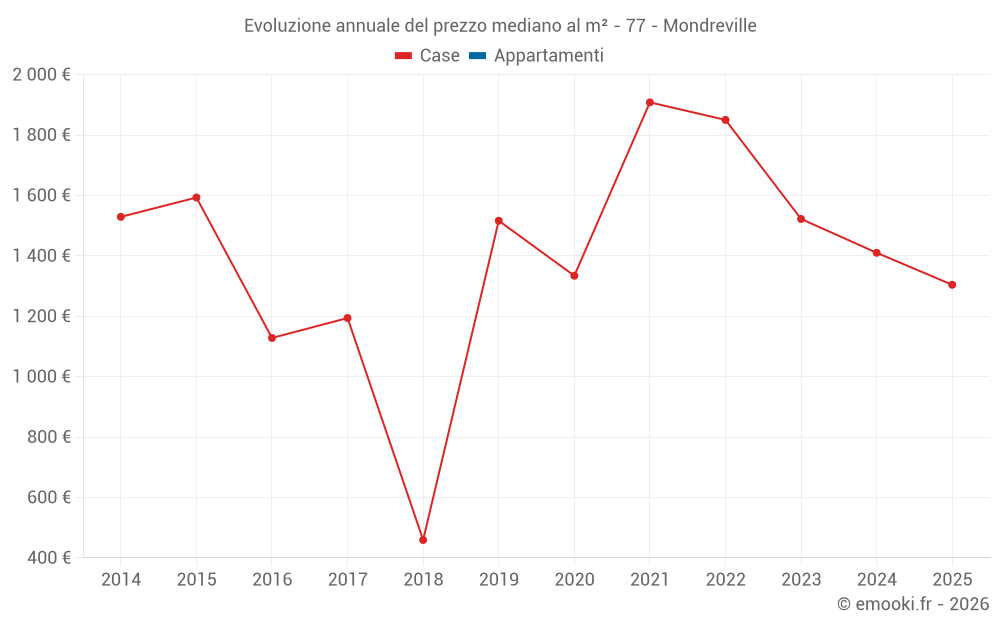 Evoluzione del prezzo mediano al m² degli appartamenti