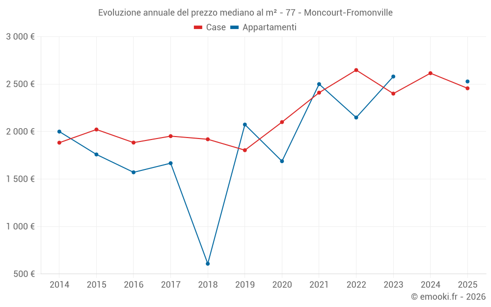 Qual è il prezzo al m2 delle case in Moncourt-Fromonville?