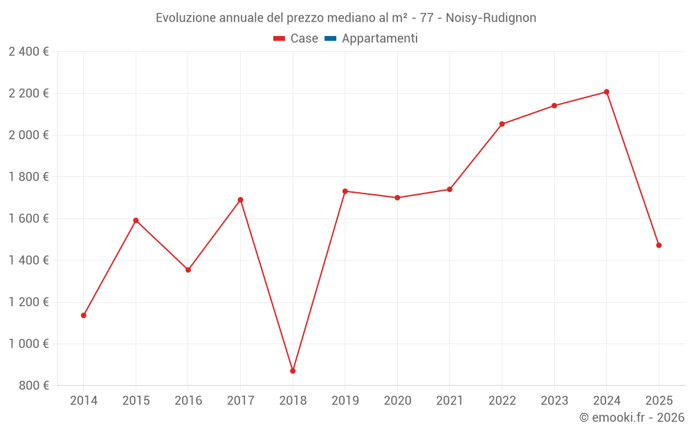Il prezzo al m² delle case è diminuito del 33% da 1 anno, ma è aumentato del 69% in 7 anni.