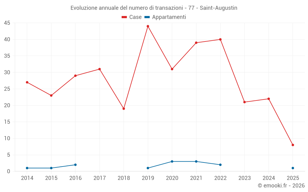 Il prezzo mediano sulle 23 transazioni di case degli ultimi 12 mesi nel comune di Saint-Augustin era di 2 692 € al metro quadrato per un valore patrimoniale mediano di 303 500 €. In questo periodo il 60% delle transazioni era tra 2 152 e 3 042 € al metro quadrato (dal 2° all'8° decile).