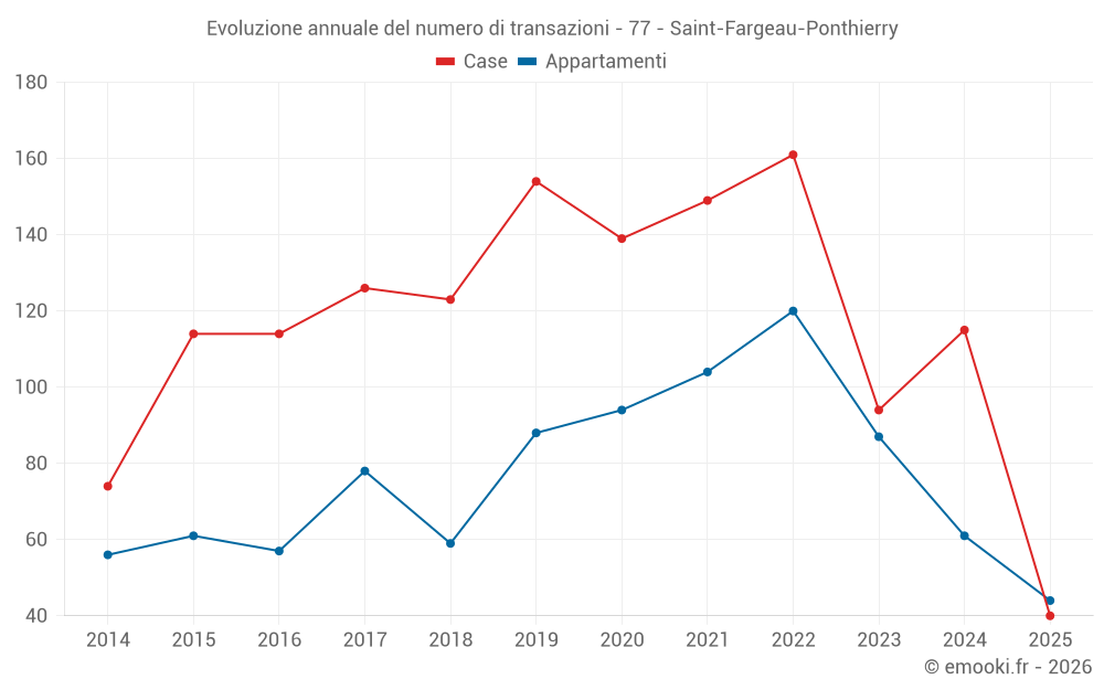 Il prezzo mediano sulle 44 transazioni di appartamenti degli ultimi 6 mesi nel comune di Saint-Fargeau-Ponthierry era di 2 902 € al metro quadrato per un valore patrimoniale mediano di 129 140 €. In questo periodo il 60% delle transazioni era tra 2 227 e 3 364 € al metro quadrato (dal 2° all'8° decile).