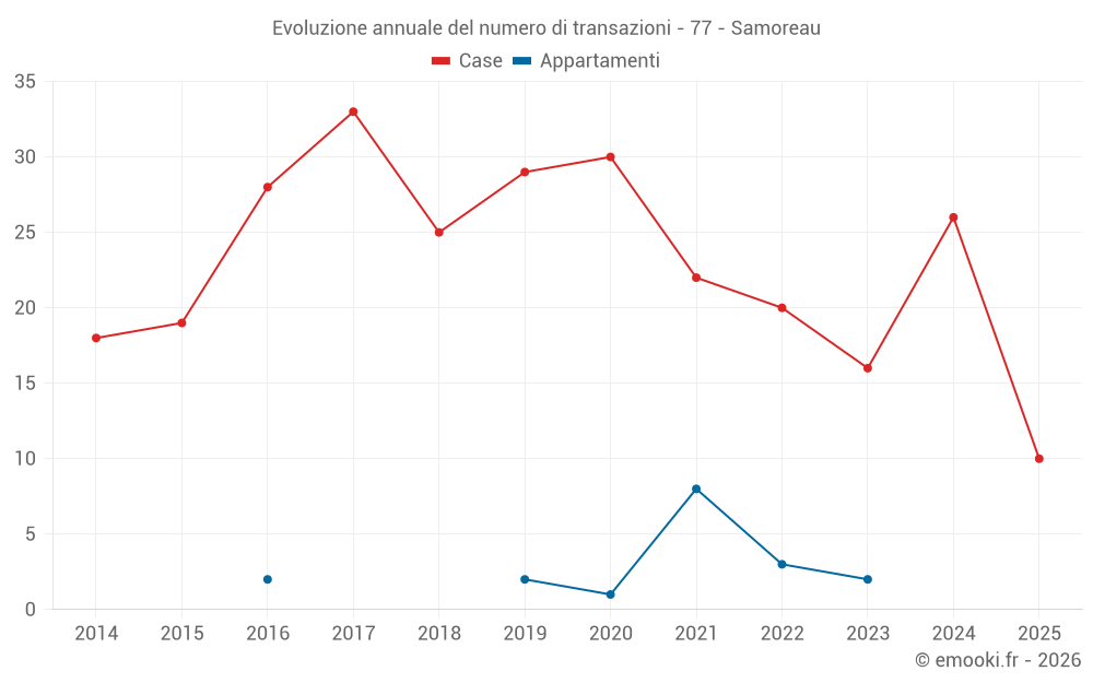 Il prezzo mediano sulle 28 transazioni di case degli ultimi 12 mesi nel comune di Samoreau era di 2 865 € al metro quadrato per un valore patrimoniale mediano di 286 500 €. In questo periodo il 60% delle transazioni era tra 2 426 e 3 353 € al metro quadrato (dal 2° all'8° decile).