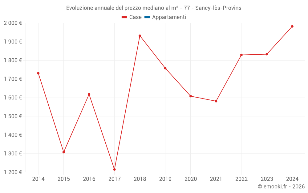 Evoluzione del prezzo mediano al m² degli appartamenti
