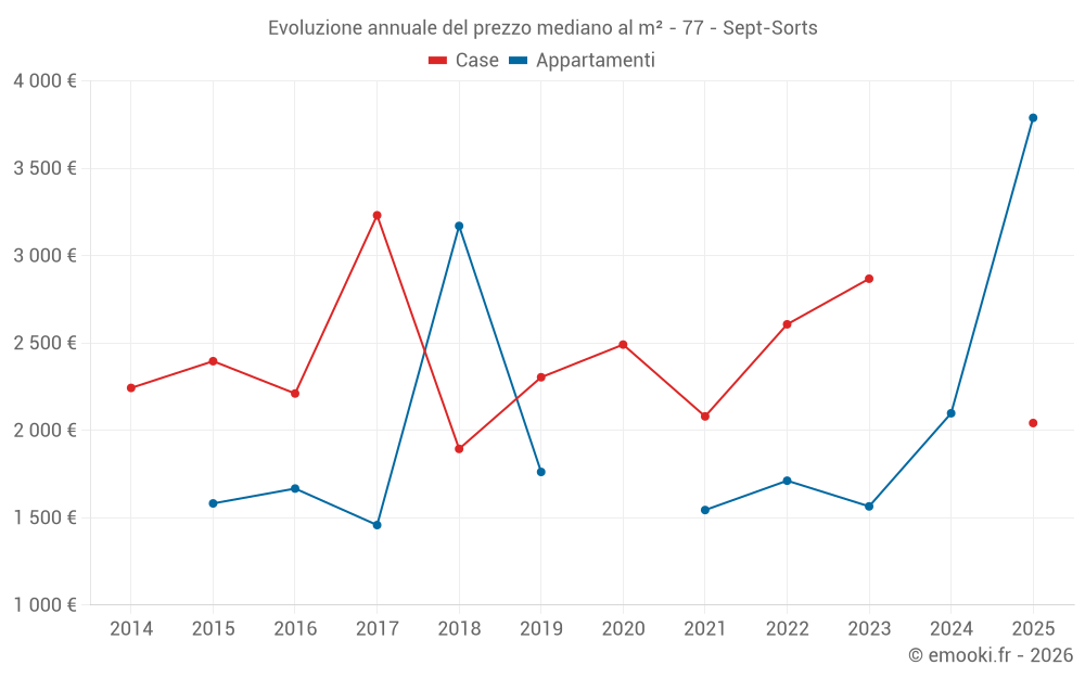 Mappa dei prezzi della casa nel comune di Sept-Sorts, scegli una sezione per vedere le transazioni per parcella.