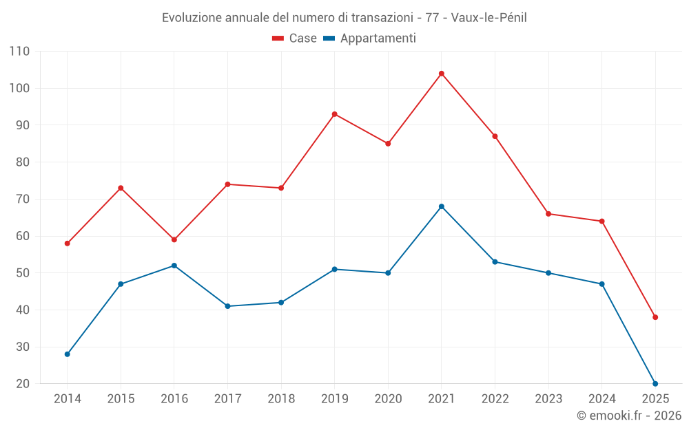 Il prezzo mediano sulle 38 transazioni di case degli ultimi 6 mesi nel comune di Vaux-le-Pénil era di 2 873 € al metro quadrato per un valore patrimoniale mediano di 289 500 €. In questo periodo il 60% delle transazioni era tra 2 403 e 3 469 € al metro quadrato (dal 2° all'8° decile).