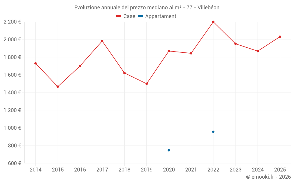 Evoluzione del prezzo mediano al m² degli appartamenti
