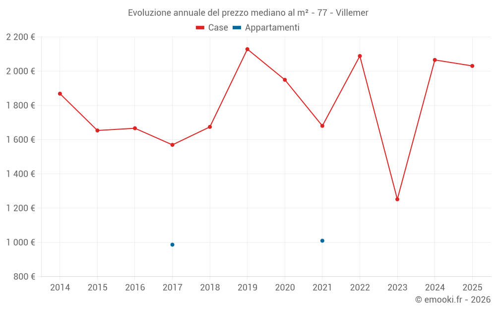Evoluzione del prezzo mediano al m² degli appartamenti
