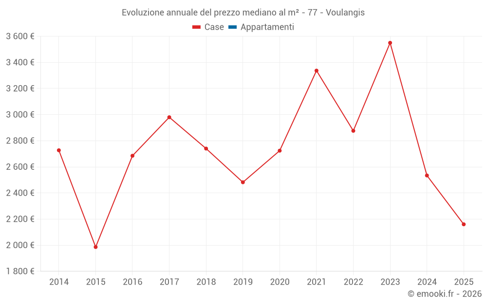 Il prezzo mediano sulle 20 transazioni di case degli ultimi 12 mesi nel comune di Voulangis era di 2 375 € al metro quadrato per un valore patrimoniale mediano di 282 585 €. In questo periodo il 60% delle transazioni era tra 1 112 e 3 313 € al metro quadrato (dal 2° all'8° decile).