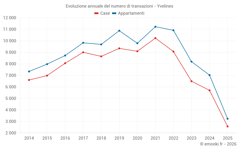 Il prezzo mediano sulle 1169 transazioni di case degli ultimi 3 mesi nel dipartimento di Yvelines era di 3 791 € al metro quadrato per un valore patrimoniale mediano di 392 695 €. In questo periodo il 60% delle transazioni era tra 2 727 e 5 630 € al metro quadrato (dal 2° all'8° decile).
