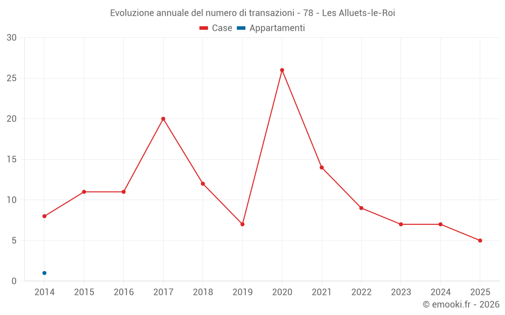 Il prezzo mediano sulle 16 transazioni di case degli ultimi 24 mesi nel comune di Les Alluets-le-Roi era di 3 894 € al metro quadrato per un valore patrimoniale mediano di 441 000 €. In questo periodo il 60% delle transazioni era tra 3 143 e 4 911 € al metro quadrato (dal 2° all'8° decile).