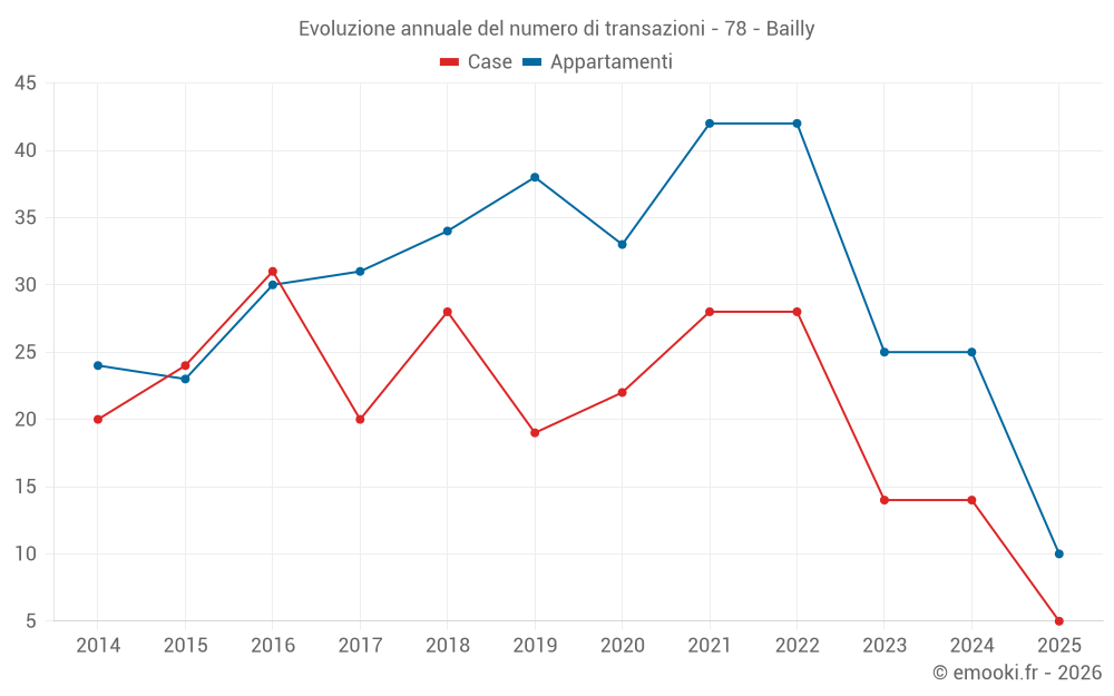 Il prezzo mediano sulle 18 transazioni di case degli ultimi 12 mesi nel comune di Bailly era di 4 990 € al metro quadrato per un valore patrimoniale mediano di 638 300 €. In questo periodo il 60% delle transazioni era tra 4 682 e 5 871 € al metro quadrato (dal 2° all'8° decile).