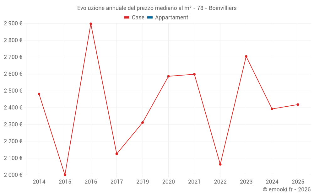 Evoluzione del prezzo mediano al m² degli appartamenti