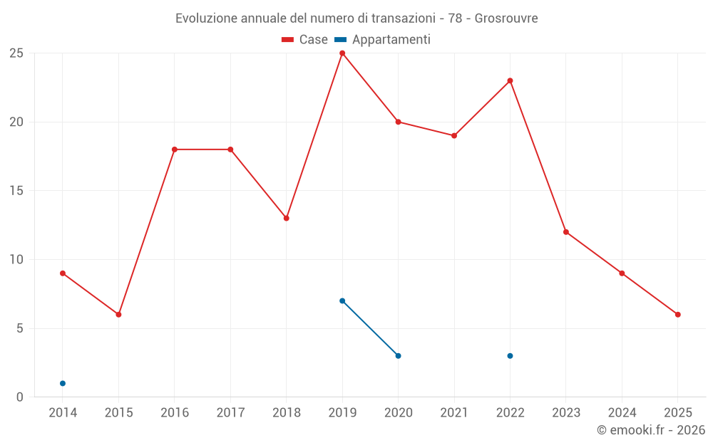 Il prezzo mediano sulle 22 transazioni di case degli ultimi 24 mesi nel comune di Grosrouvre era di 4 790 € al metro quadrato per un valore patrimoniale mediano di 919 814 €. In questo periodo il 60% delle transazioni era tra 3 659 e 8 244 € al metro quadrato (dal 2° all'8° decile).