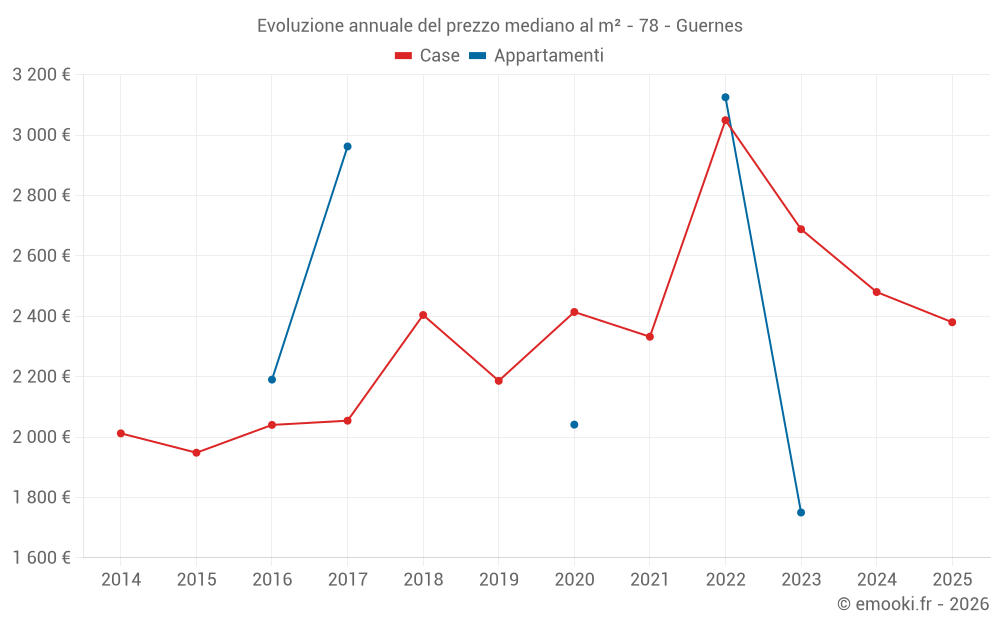 Qual è il prezzo al m2 delle case in Guernes?