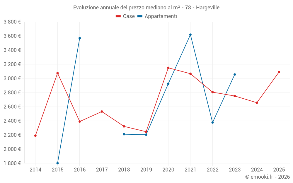 Evoluzione del prezzo mediano al m² degli appartamenti