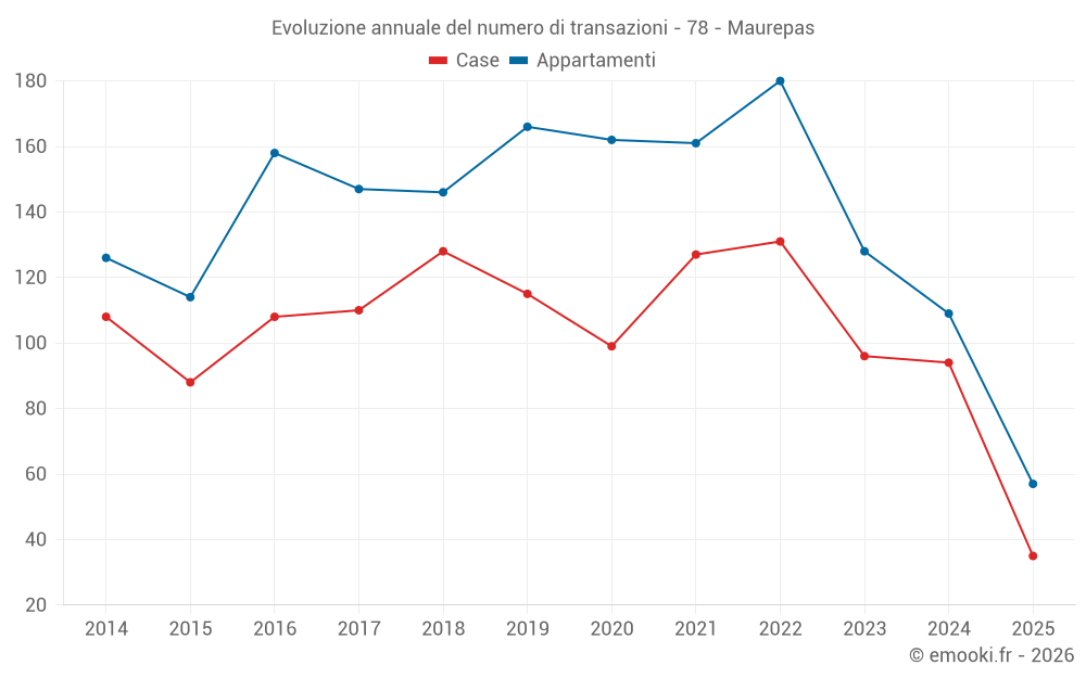Il prezzo mediano sulle 21 transazioni di appartamenti degli ultimi 3 mesi nel comune di Maurepas era di 2 750 € al metro quadrato per un valore patrimoniale mediano di 182 500 €. In questo periodo il 60% delle transazioni era tra 2 230 e 3 222 € al metro quadrato (dal 2° all'8° decile).