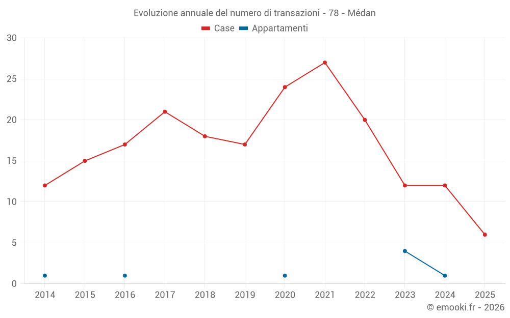 Il prezzo mediano sulle 17 transazioni di case degli ultimi 12 mesi nel comune di Médan era di 4 337 € al metro quadrato per un valore patrimoniale mediano di 578 000 €. In questo periodo il 60% delle transazioni era tra 2 897 e 5 699 € al metro quadrato (dal 2° all'8° decile).