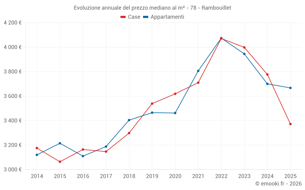 Il prezzo mediano sulle 47 transazioni di appartamenti degli ultimi 3 mesi nel comune di Rambouillet era di 3 773 € al metro quadrato per un valore patrimoniale mediano di 166 000 €. In questo periodo il 60% delle transazioni era tra 2 993 e 4 590 € al metro quadrato (dal 2° all'8° decile).