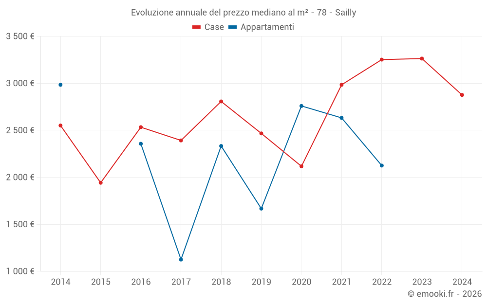 Evoluzione del prezzo mediano al m² degli appartamenti