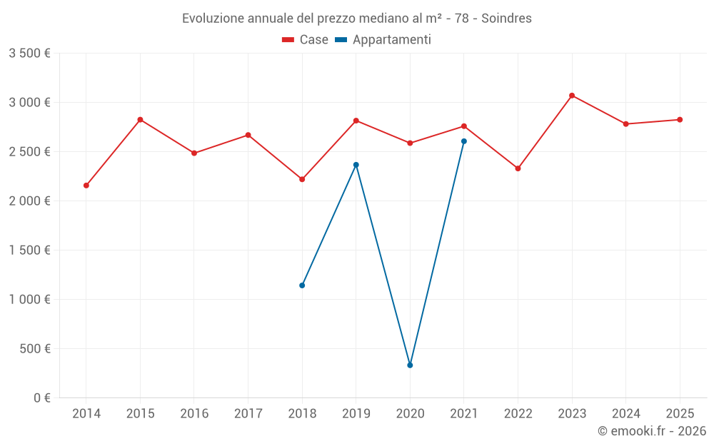 Evoluzione del prezzo mediano al m² degli appartamenti