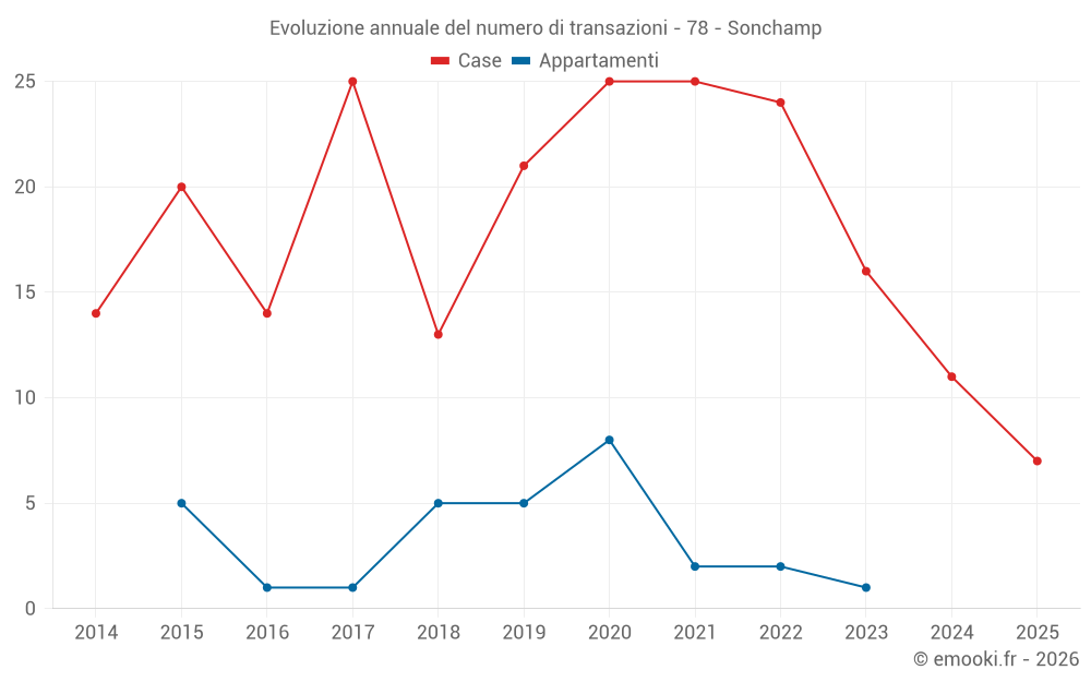 Il prezzo mediano sulle 24 transazioni di case degli ultimi 24 mesi nel comune di Sonchamp era di 3 080 € al metro quadrato per un valore patrimoniale mediano di 304 290 €. In questo periodo il 60% delle transazioni era tra 2 504 e 3 574 € al metro quadrato (dal 2° all'8° decile).