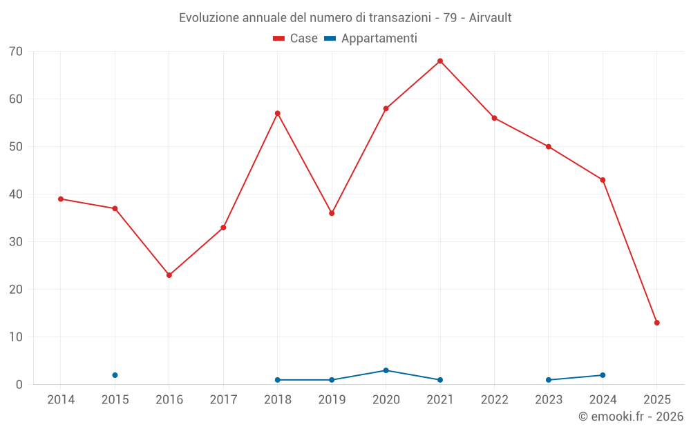 Il prezzo mediano sulle 40 transazioni di case degli ultimi 12 mesi nel comune di Airvault era di 1 002 € al metro quadrato per un valore patrimoniale mediano di 86 670 €. In questo periodo il 60% delle transazioni era tra 488 e 1 366 € al metro quadrato (dal 2° all'8° decile).
