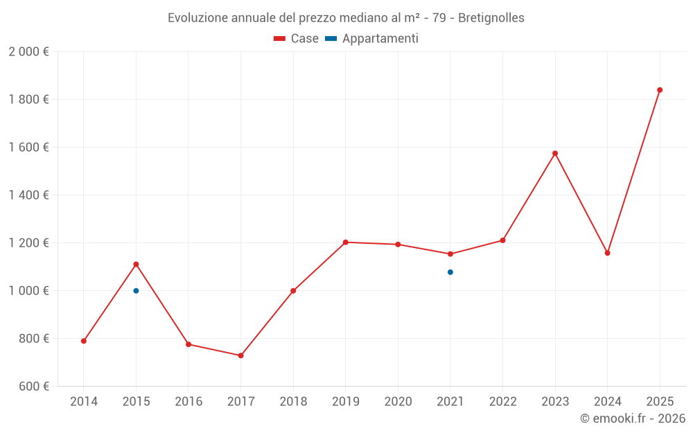 Qual è il prezzo al m2 delle case in Bretignolles?
