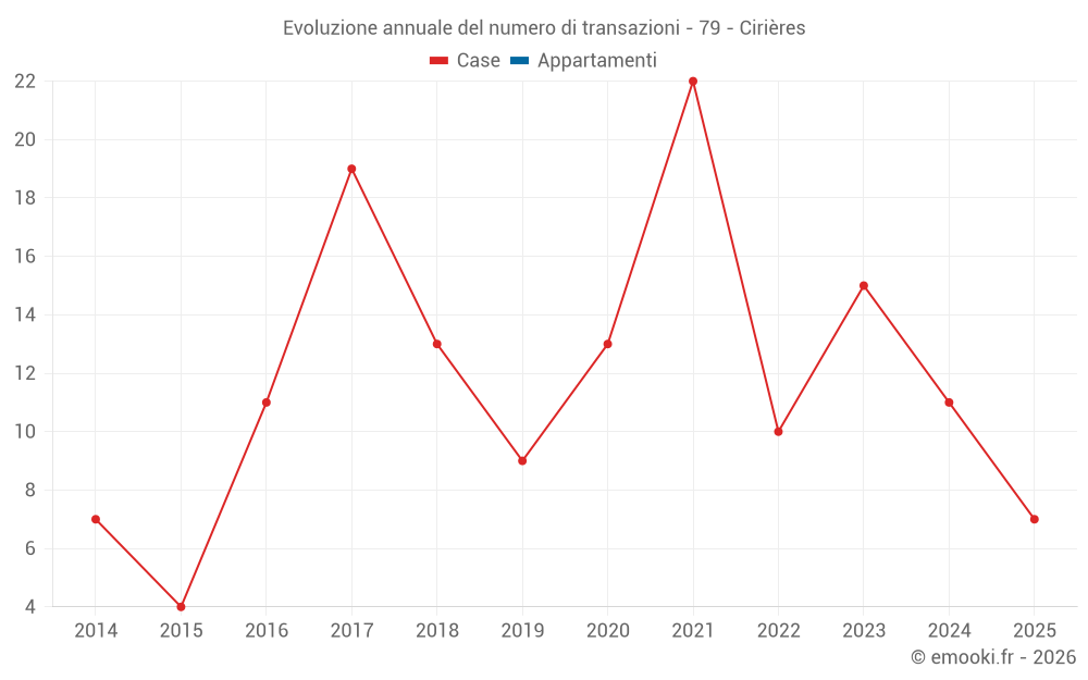 Il prezzo mediano sulle 16 transazioni di case degli ultimi 12 mesi nel comune di Cirières era di 1 058 € al metro quadrato per un valore patrimoniale mediano di 131 500 €. In questo periodo il 60% delle transazioni era tra 828 e 1 720 € al metro quadrato (dal 2° all'8° decile).