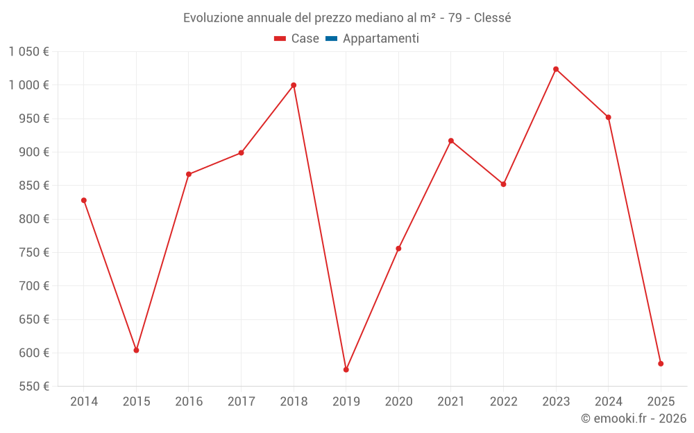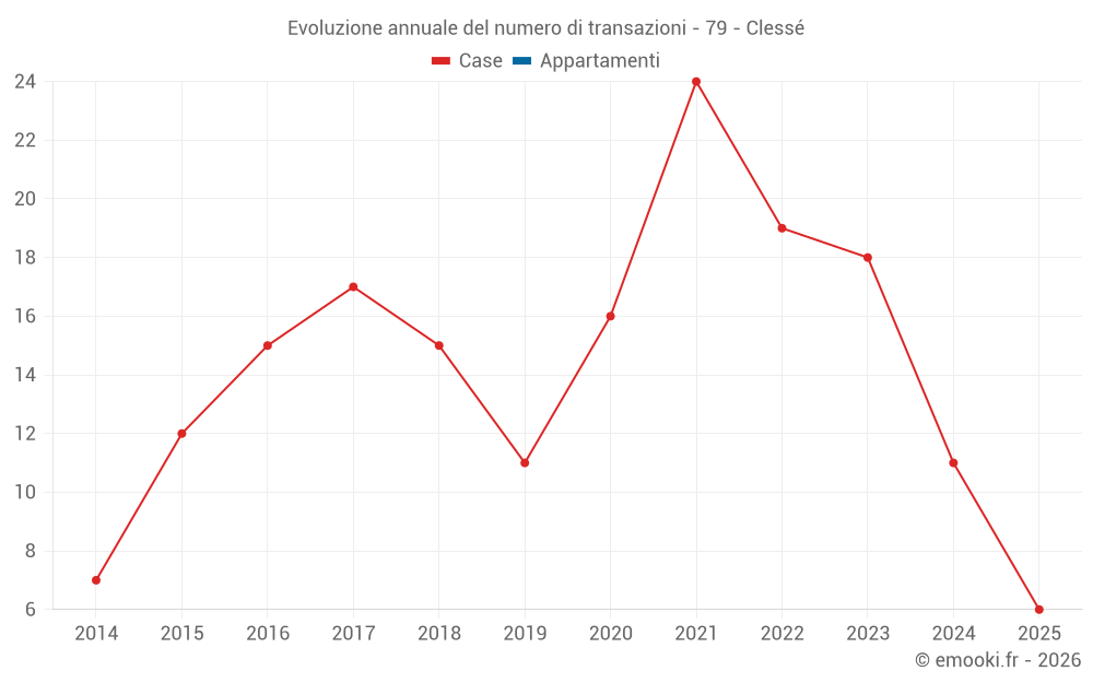 Il prezzo mediano sulle 26 transazioni di case degli ultimi 24 mesi nel comune di Clessé era di 960 € al metro quadrato per un valore patrimoniale mediano di 98 530 €. In questo periodo il 60% delle transazioni era tra 529 e 1 300 € al metro quadrato (dal 2° all'8° decile).