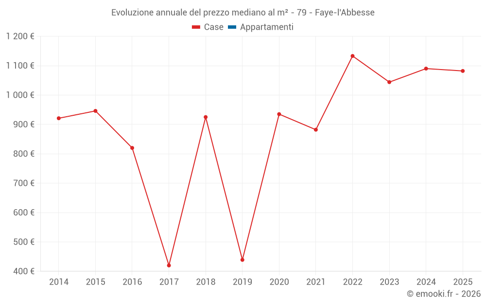 Il prezzo mediano sulle 26 transazioni di case degli ultimi 24 mesi nel comune di Faye-l'Abbesse era di 967 € al metro quadrato per un valore patrimoniale mediano di 100 425 €. In questo periodo il 60% delle transazioni era tra 539 e 1 470 € al metro quadrato (dal 2° all'8° decile).