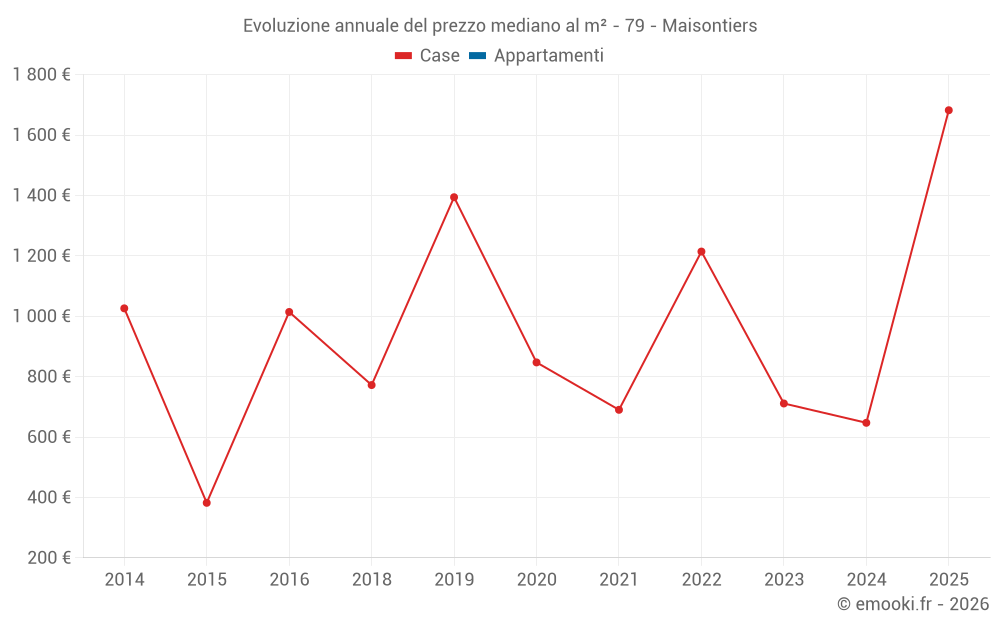 Evoluzione del prezzo mediano al m² degli appartamenti