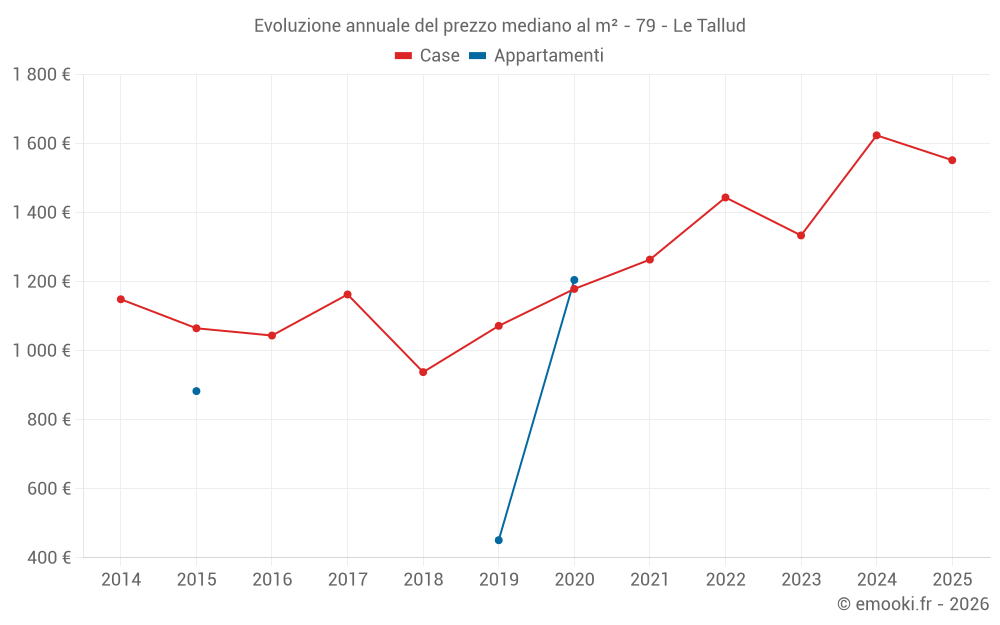 Il prezzo mediano sulle 20 transazioni di case degli ultimi 12 mesi nel comune di Le Tallud era di 1 624 € al metro quadrato per un valore patrimoniale mediano di 156 000 €. In questo periodo il 60% delle transazioni era tra 906 e 1 754 € al metro quadrato (dal 2° all'8° decile).