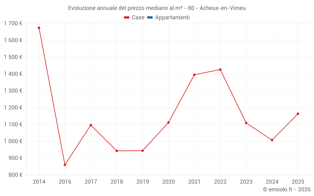 Evoluzione del prezzo mediano al m² degli appartamenti