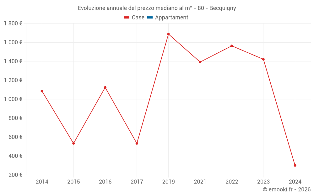 Evoluzione del prezzo mediano al m² degli appartamenti