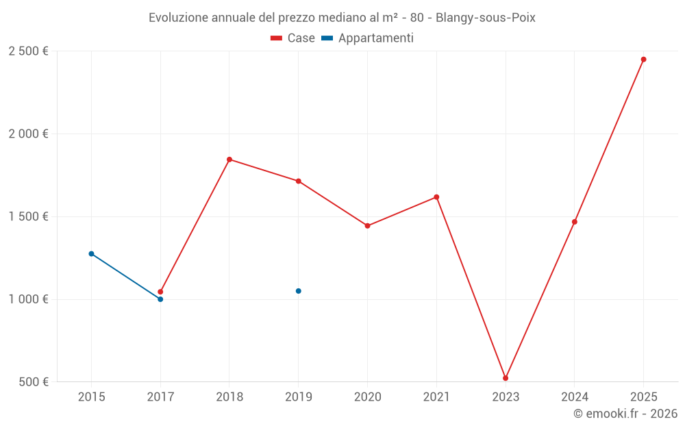 Evoluzione del prezzo mediano al m² degli appartamenti