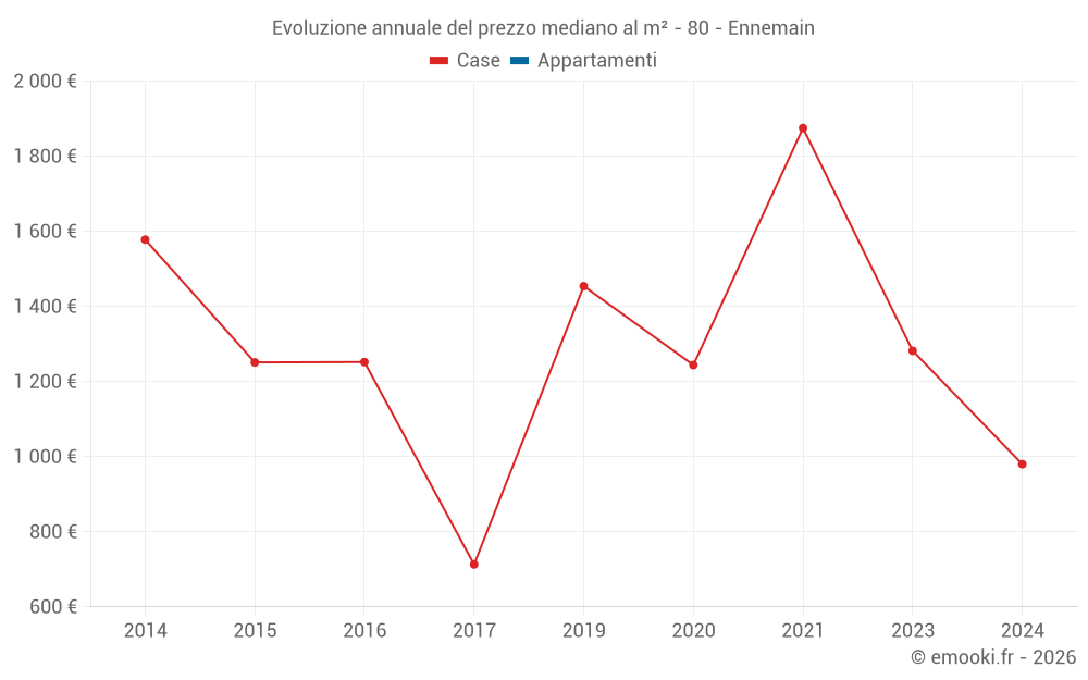 Evoluzione del prezzo mediano al m² degli appartamenti