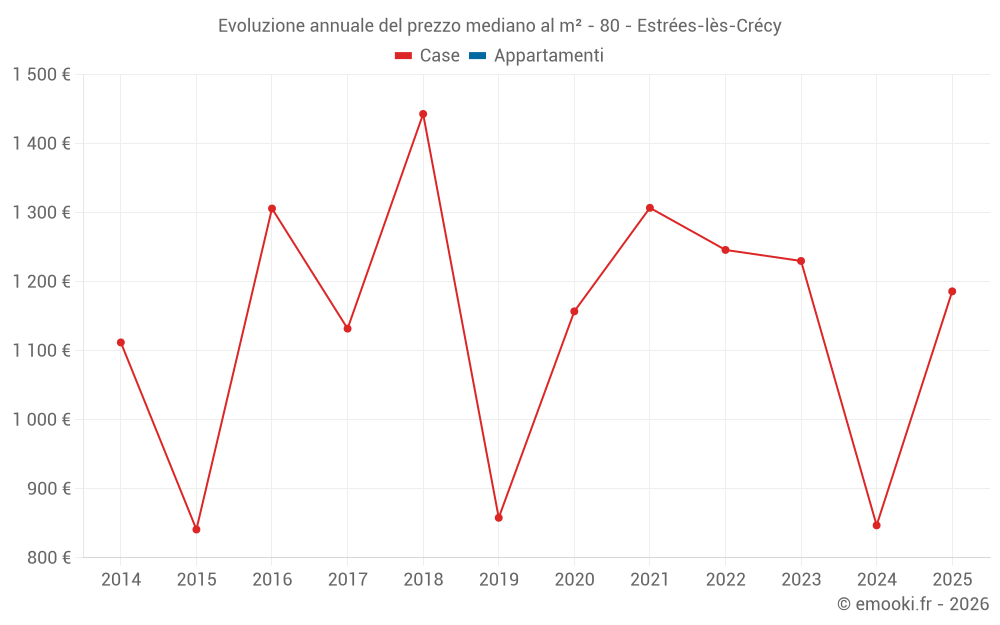 Evoluzione del prezzo mediano al m² degli appartamenti