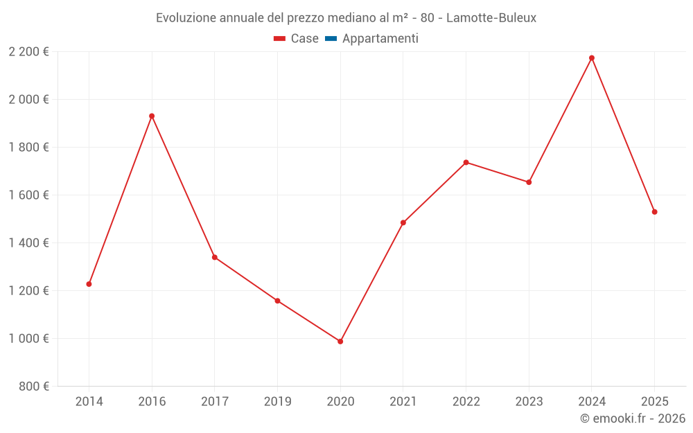 Evoluzione del prezzo mediano al m² degli appartamenti