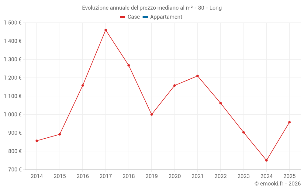 Qual è il prezzo al m2 delle case in Long?