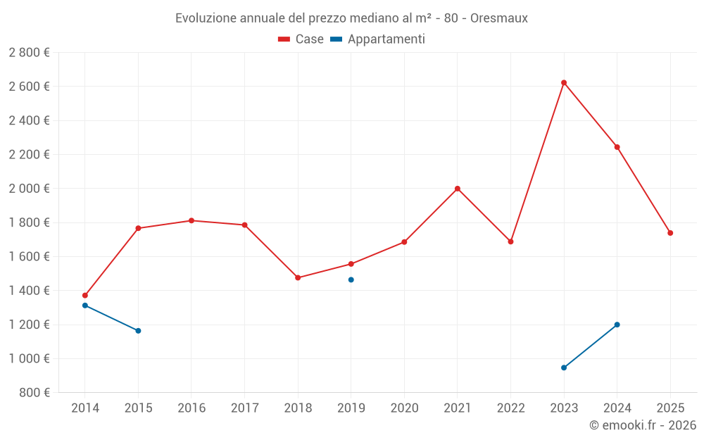 Qual è il prezzo al m2 delle case in Oresmaux?