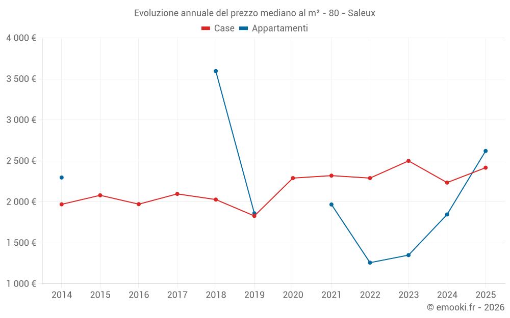 Il prezzo mediano sulle 31 transazioni di case degli ultimi 12 mesi nel comune di Saleux era di 2 309 € al metro quadrato per un valore patrimoniale mediano di 213 950 €. In questo periodo il 60% delle transazioni era tra 1 642 e 2 701 € al metro quadrato (dal 2° all'8° decile).
