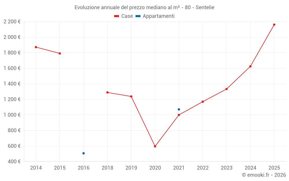 Evoluzione del prezzo mediano al m² degli appartamenti