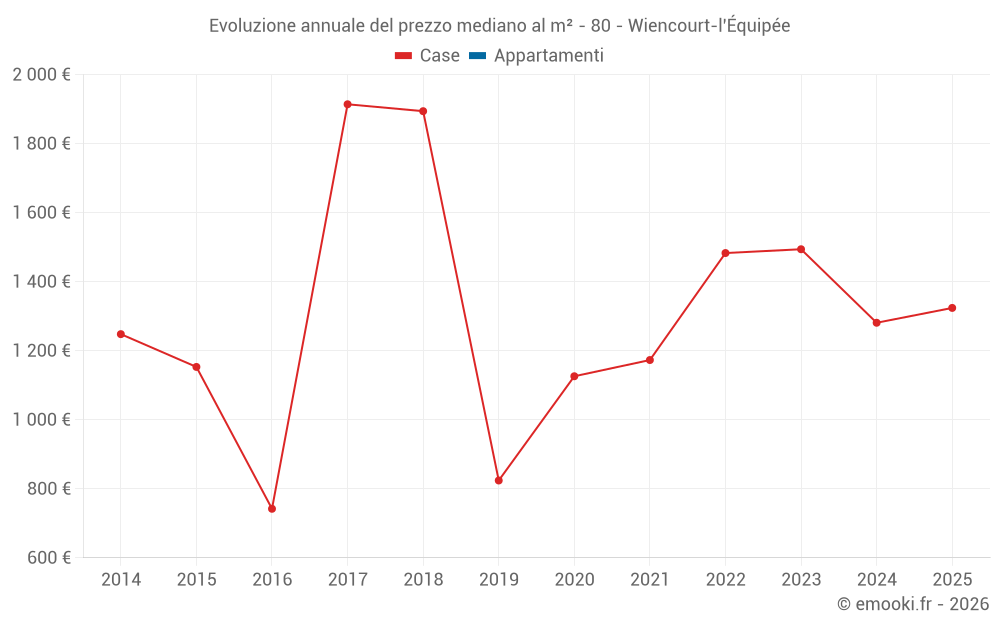 Evoluzione del prezzo mediano al m² degli appartamenti