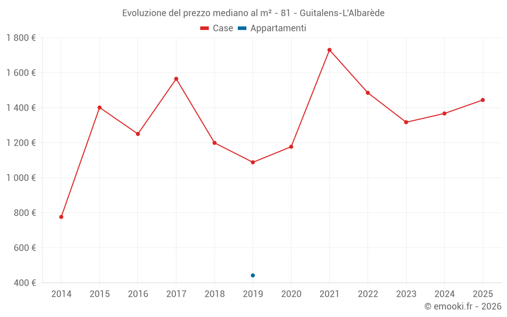 Mappa dei prezzi della casa nel comune di Guitalens-L'Albarède, scegli una sezione per vedere le transazioni per parcella.
