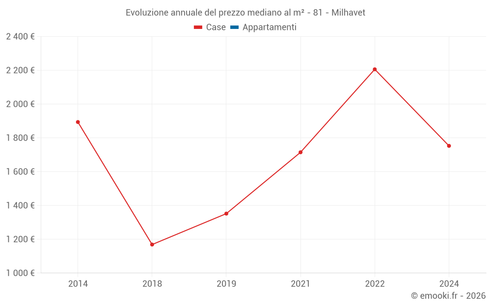 Evoluzione del prezzo mediano al m² degli appartamenti