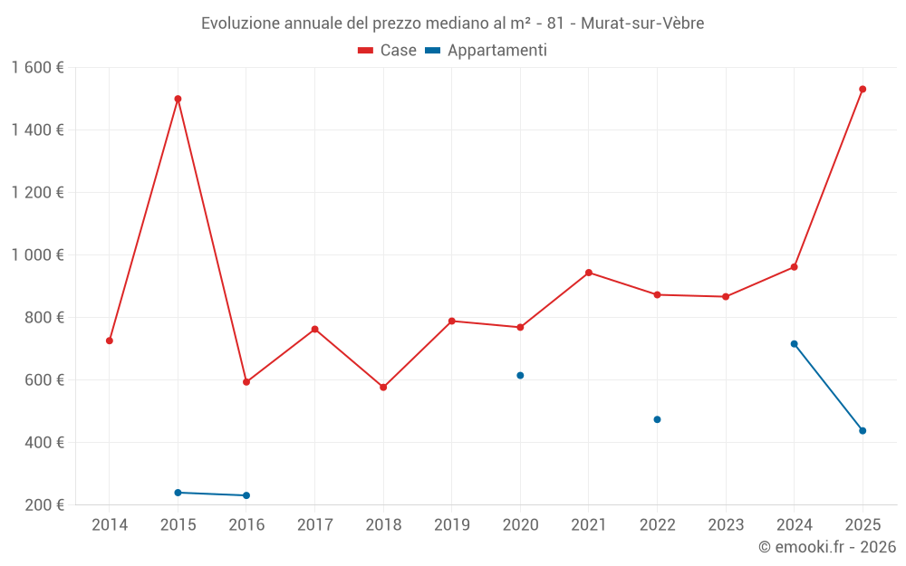 Qual è il prezzo al m2 delle case in Murat-sur-Vèbre?