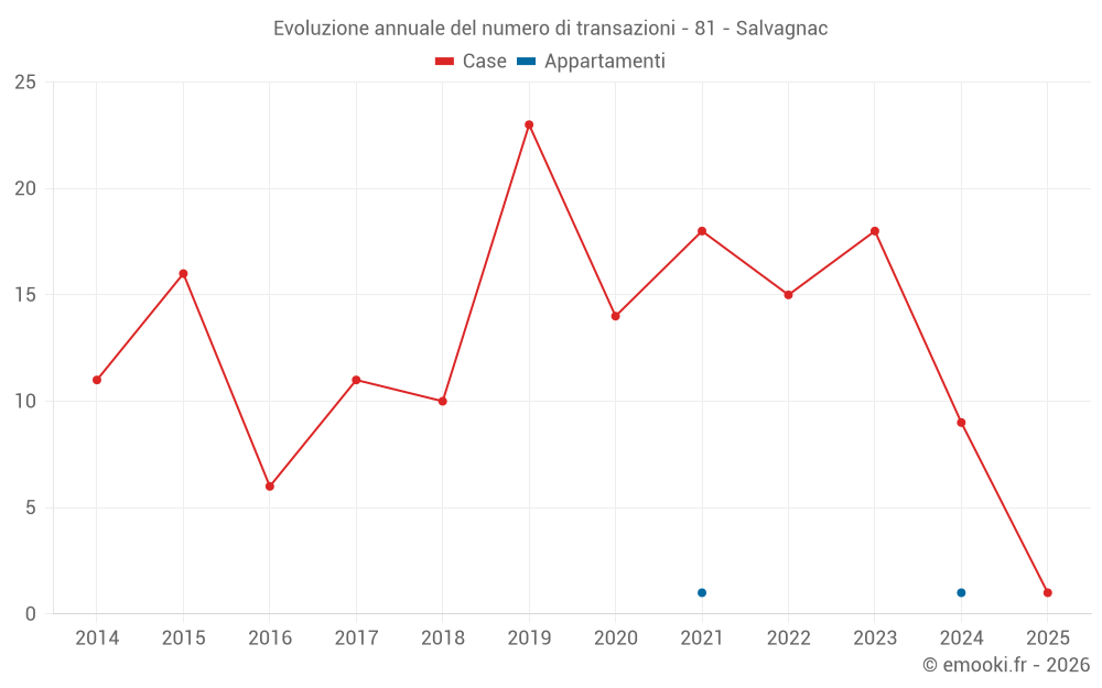 Il prezzo mediano sulle 17 transazioni di case degli ultimi 24 mesi nel comune di Salvagnac era di 2 084 € al metro quadrato per un valore patrimoniale mediano di 251 000 €. In questo periodo il 60% delle transazioni era tra 1 396 e 2 516 € al metro quadrato (dal 2° all'8° decile).