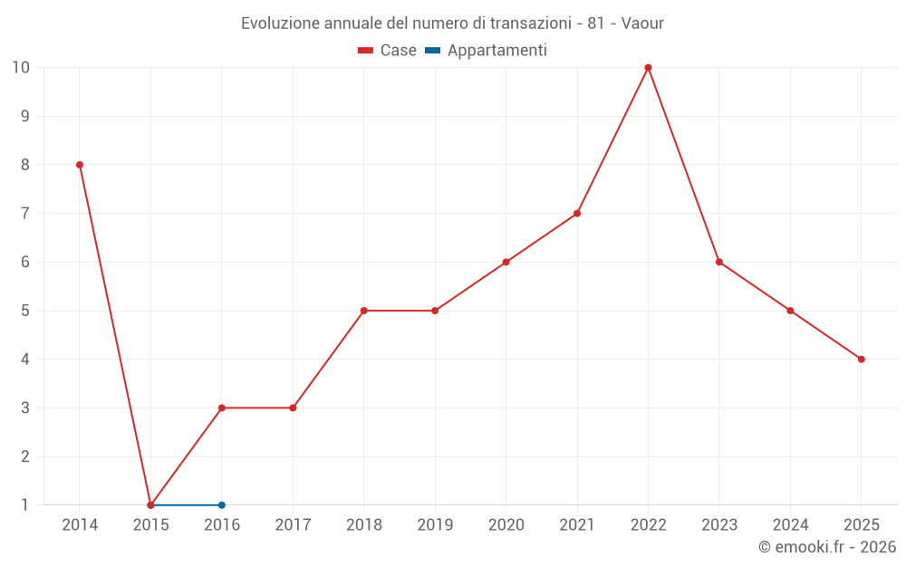 Attenzione, ultimo anno incompleto. Le proiezioni sono effettuate in base alle proporzioni tra semestri dell'anno precedente a livello dipartimentale/nazionale e per tipo di proprietà .